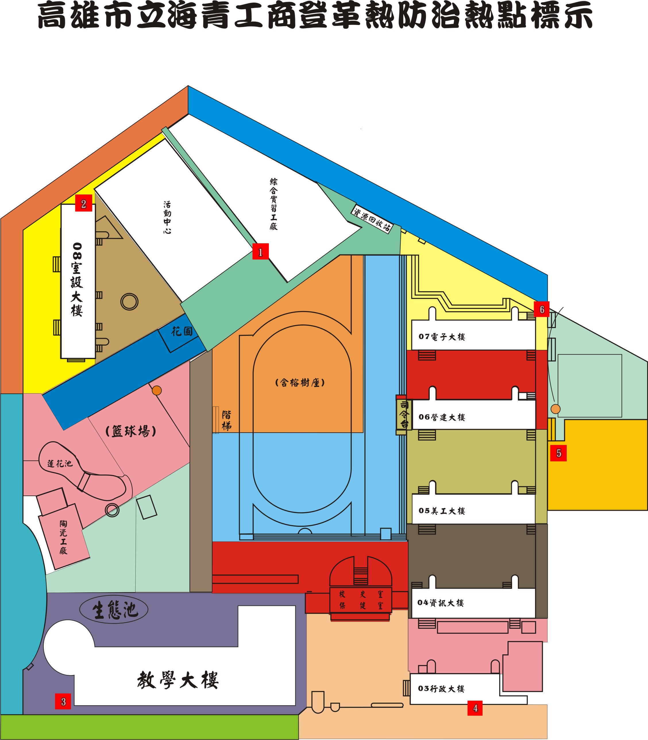 高雄市立海青工商校園登革熱防治熱點標示及責任區分配如附件,請參閱。