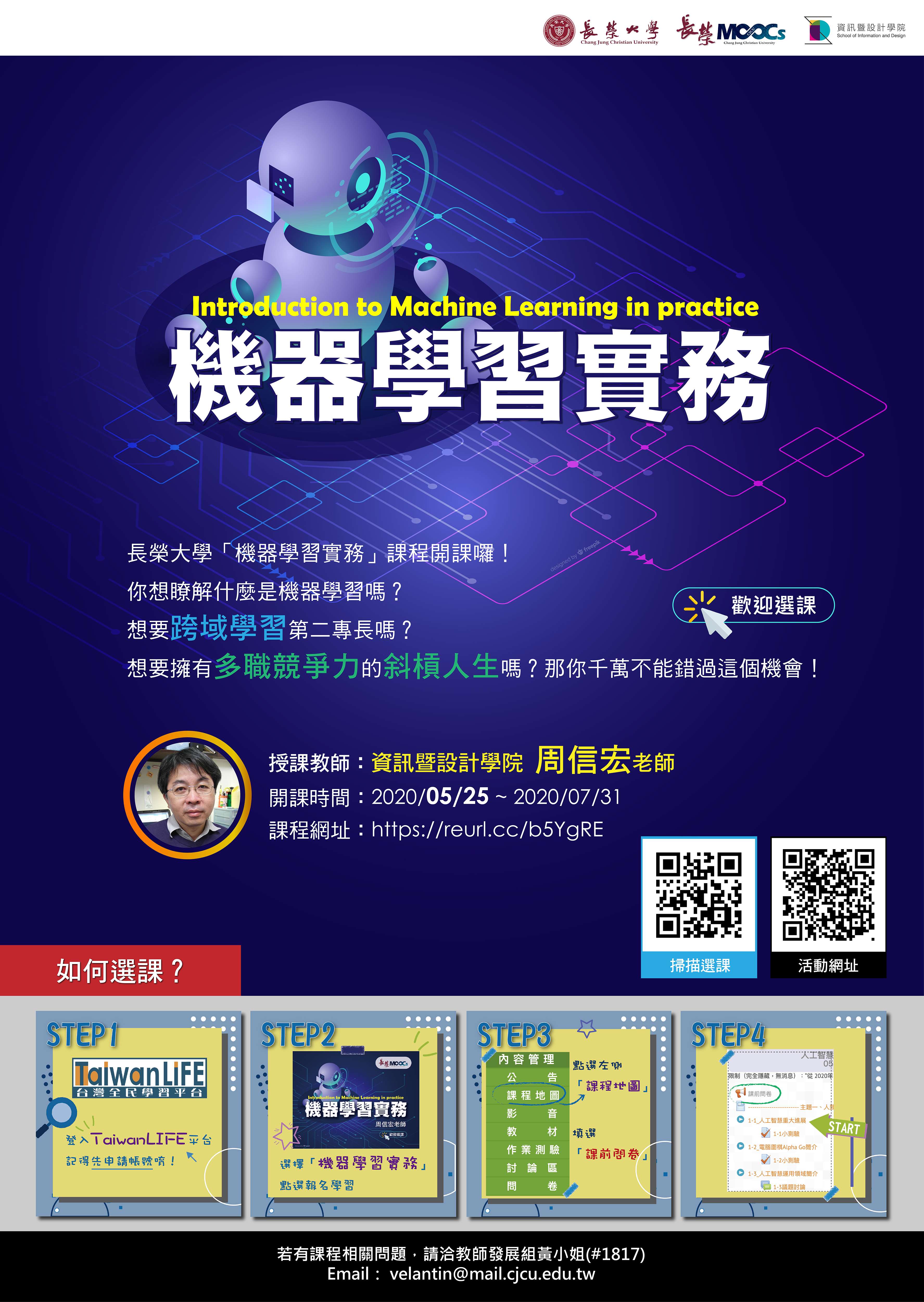 (二)課程時間:109年5月25日開課,為期七週(影音時數9.5小時)。
