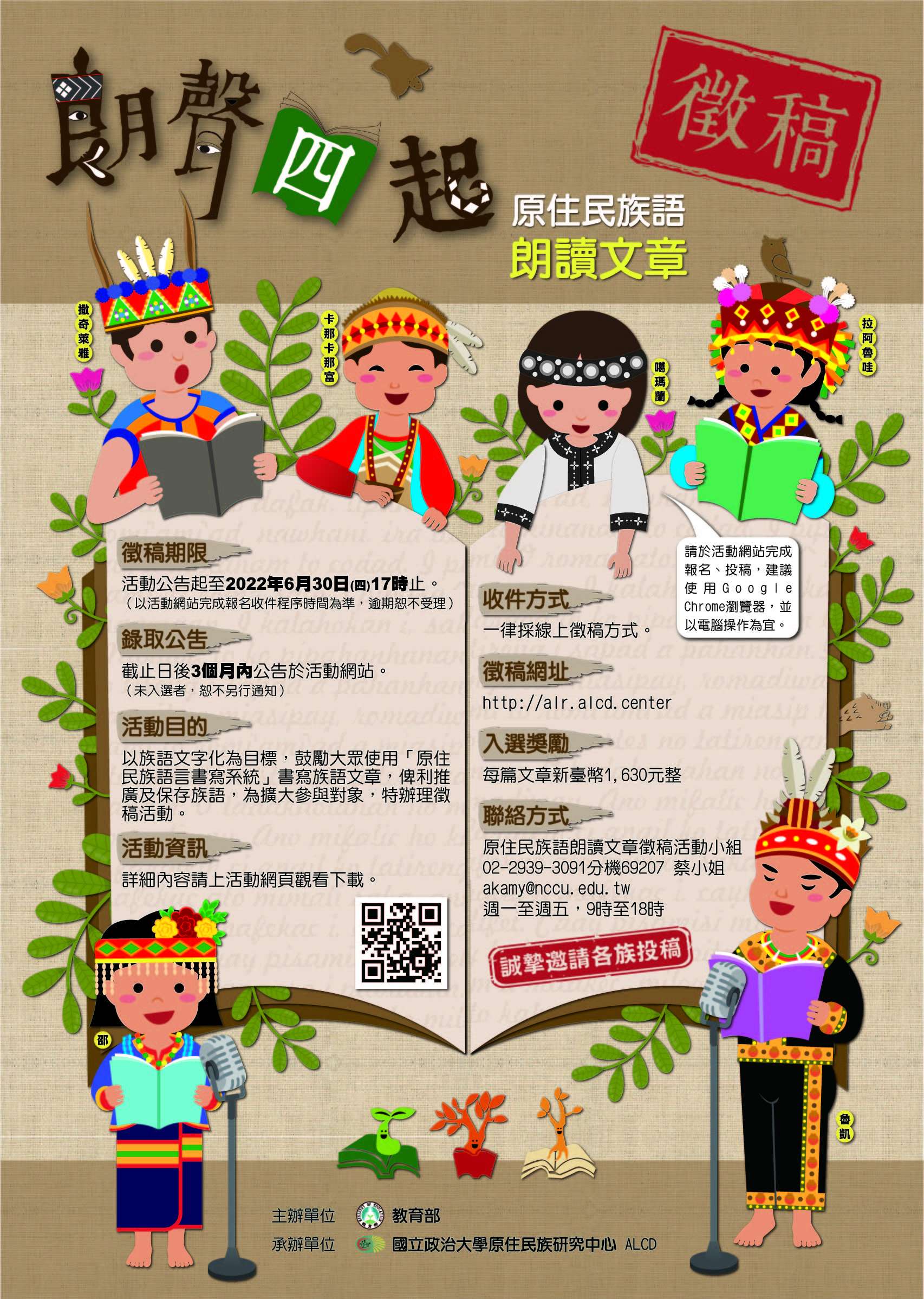 六、相關資訊均公布於「朗聲四起」專屬網站(https://alr. alcd.center/),或洽詢聯絡人:簡先生,聯絡電話: (02)29393091轉69250