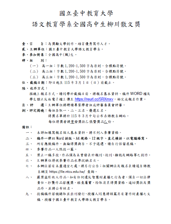 一、截稿日期:即日起至115年3月1日(日)前截止。