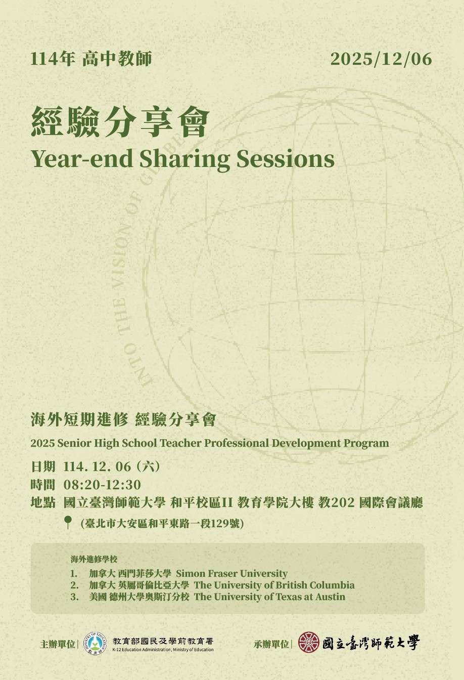 1、114年高級中等學校教師海外短期進修參與學員。